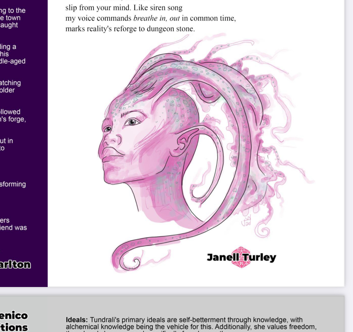 I played a decent amount of D&D (including D&D themed fitness workouts) and solo RPGs during the 2020 shutdowns, and my digital artwork of a Fae was featured in this fun Dungeons and Dragons issue.